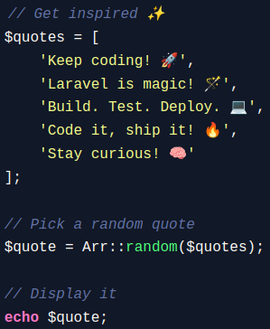 $quote = Arr::random($quotes);